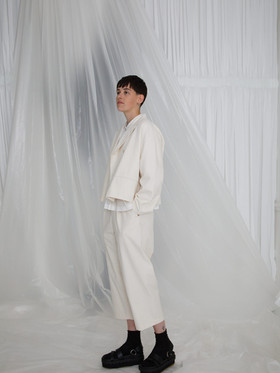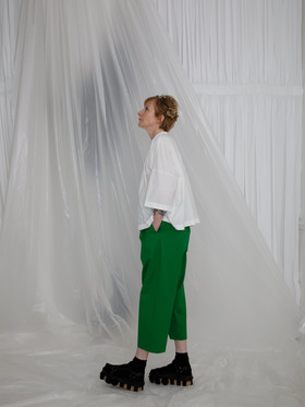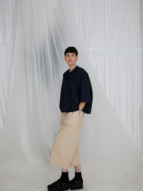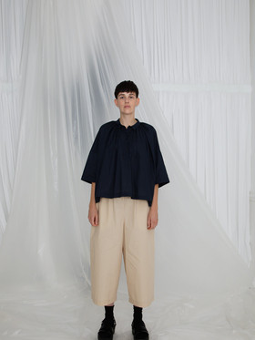 Short length gathered blouse. Wide silhouette.