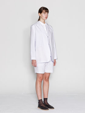 Crisp cotton fabric with typewriter finish, creating a paper-like hand feel.